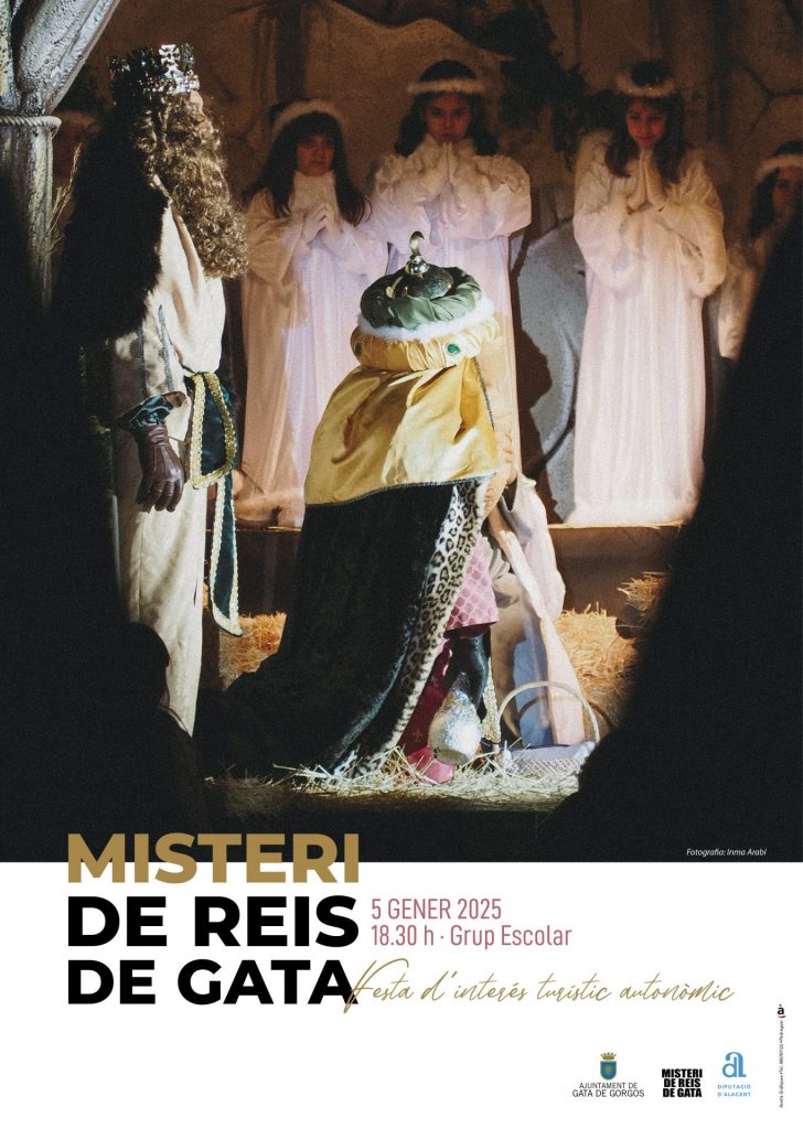 I el dia 5 de gener, arriba l’acte central, la representació teatral del Misteri de Reis, que va començar l’any 1968 amb un text original d’Antonio Salvà i que s’ha representat a Gata des de fa 57 anys i on més de 300 voluntaris fan possible la màgia, any rere any . A partir de les 18:30 hores, el grup escolar acollirà la representació en els escenaris del palau d’Herodes i del portal de Betlem.