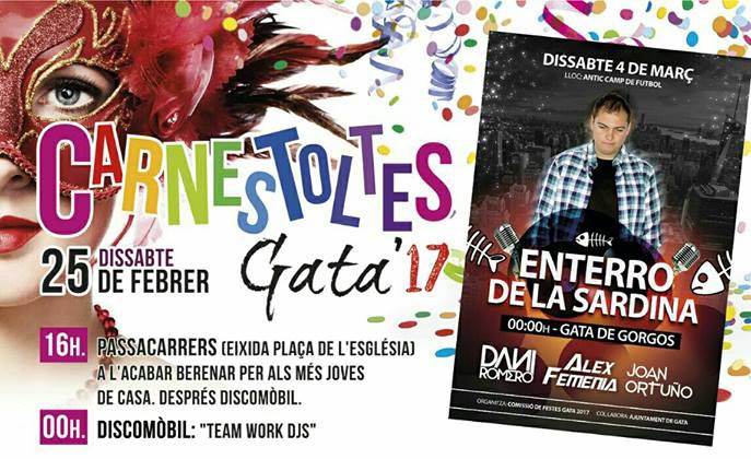 Els xiquets de Gata enceten, dissabte 25 de febrer per la vesprada les celebracions de Carnestoltes amb la desfilada infantil. A les 16 hores es concentraran tots disfressats a la plaça de l’Església per realitzar una cercavila acompanyats per la música de la colla El Montgó. La volta pel poble acabarà al passeig d’Alacant on la comissió de festes 2017 repartirà berenar i els xiquets i xiquetes podran ballar amb l’animació musical.