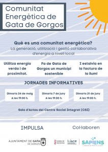 L’Ajuntment de Gata de Gorgos impulsa la creació d’una comunitat energètica local amb la intenció de fomentar l’ús de les energies renovables en el municipi. Els veïns i veïnes podran conéixer el projecte gràcies a uns tallers informatius en els quals es presentarà aquesta proposta i es respondrà a tots els dubtes i consultes que es planegen.