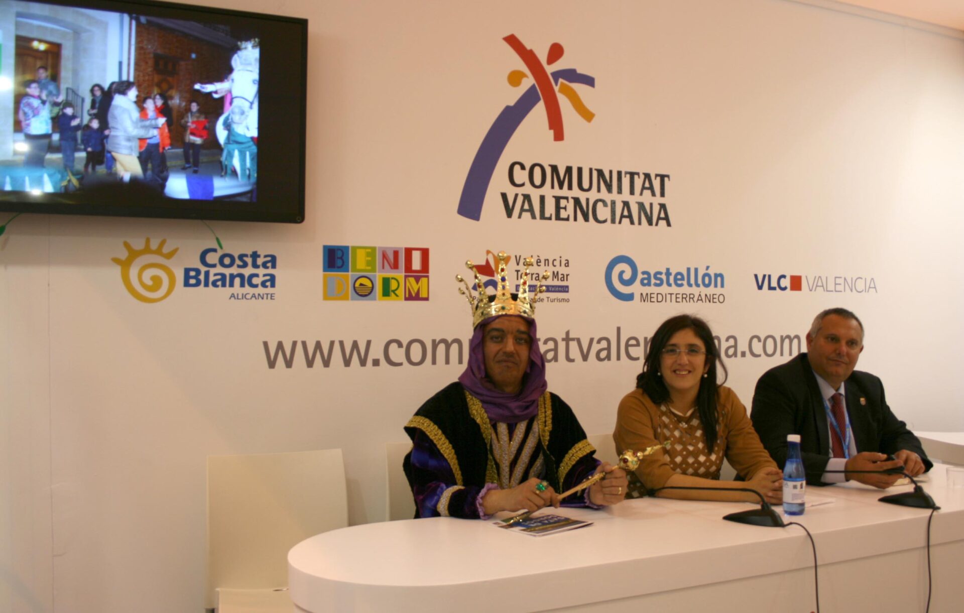 L’alcaldessa de Gata, Maite Signes; el regidor de Turisme, Guillermo Cholbi, i el personatge d’Herodes van ser els encarregats de presentar, ahir, la Festa de Reis de Gata, recentment declarada d’Interés Turístic Local per la Generalitat Valenciana, en Fitur 2015.