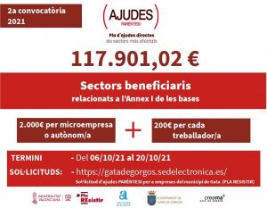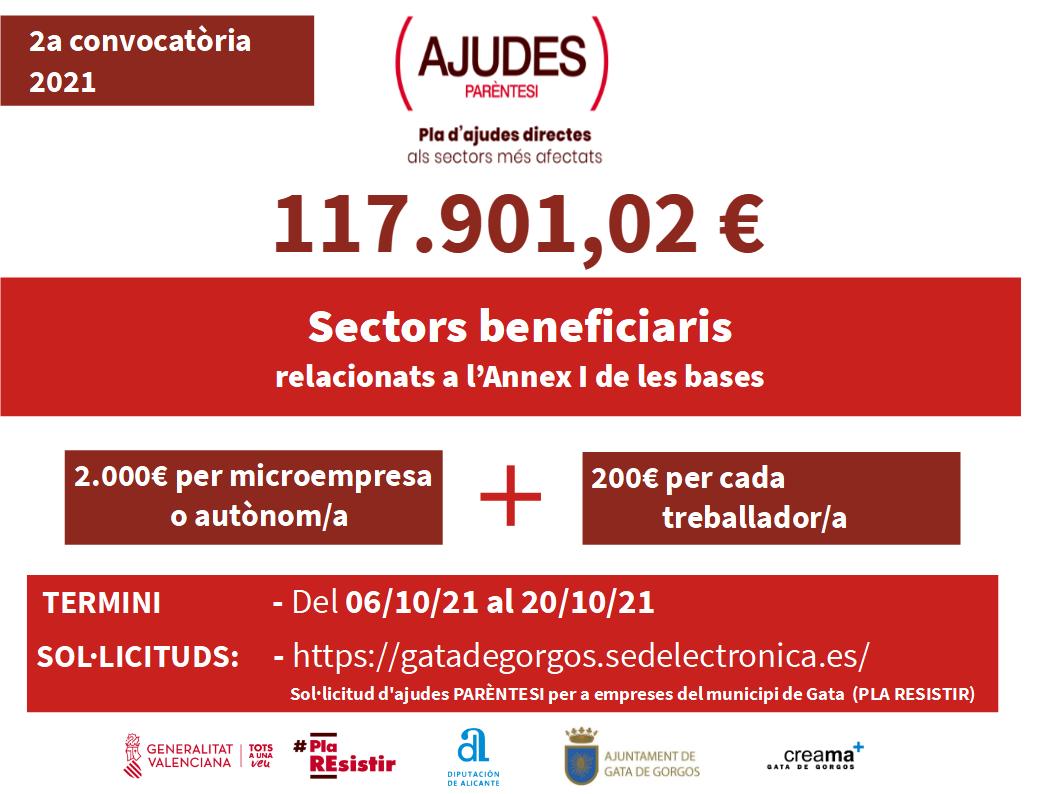 L’Ajuntament de Gata ha aprovat les bases de la 2a convocatòria de les Ajudes Parèntesi (Pla Resistir) dirigides a persones autònomes i microempreses locals.