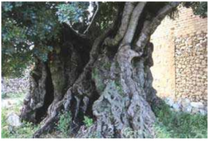 I finalment, podem contemplar un garrofer amb un tronc molt característic, ja que a causa dels molts anys de vida que té l’arbre, el seu tronc presenta un aspecte molt peculiar. El garrofer té una alçada de 9 metres i un perímetre a la base de 8 metres.