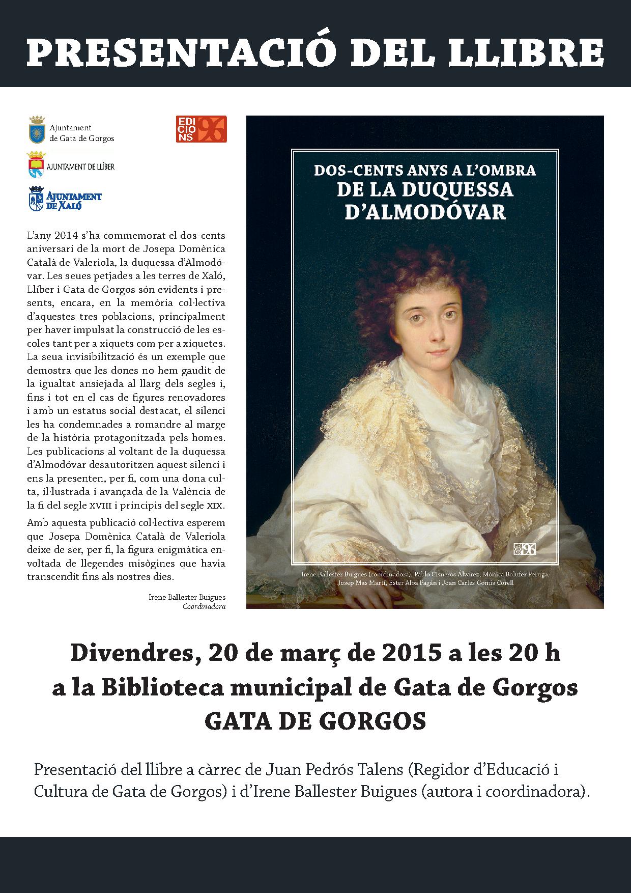 PRESENTACIÓ DEL LLIBRE: “DOS-CENTS ANYS A L’OMBRA DE LA DUQUESSA D’ALMODÓVAR”