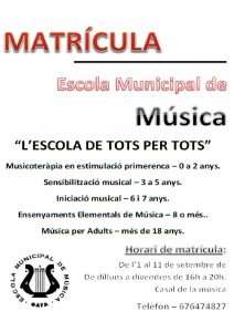 L’Escola Municipal de Música presenta novetats per a l’inici de curs L’Escola Municipal de Música presenta les diferents novetats que …
