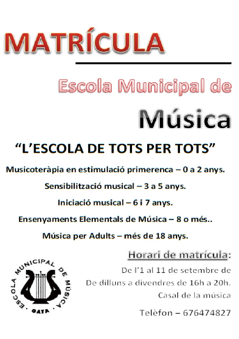 L’ESCOLA DE MÚSICA PRESENTA NOVETATS PER A L’INICI DE CURS