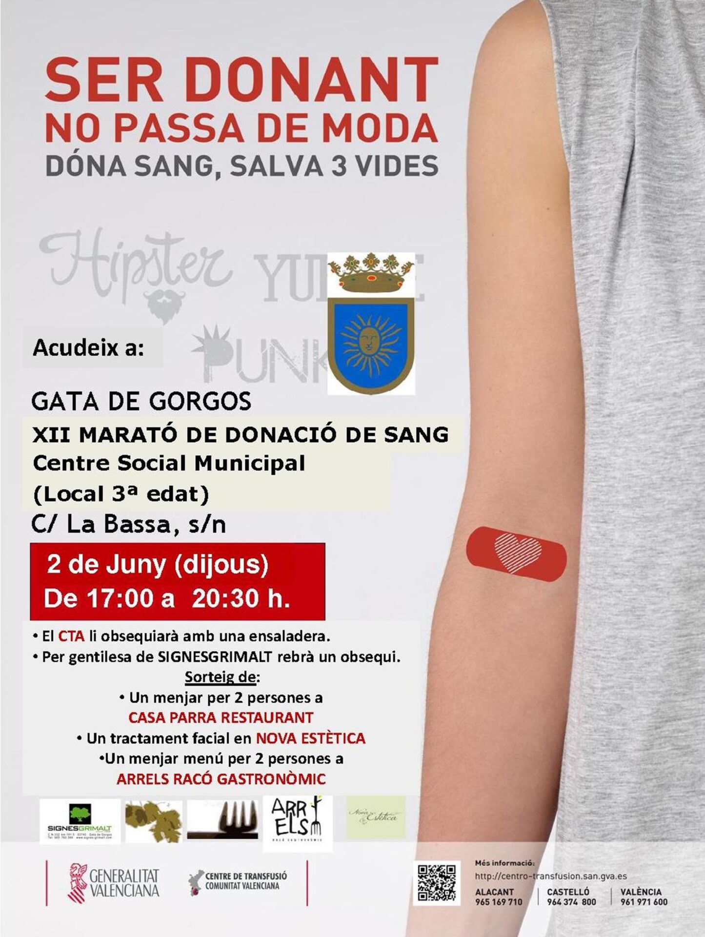 Dijous 2 de juny se celebra la XII Marató Solidària de Donació de Sang a Gata que anualment, coincidint …